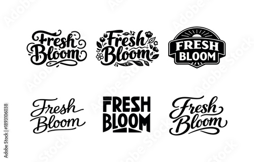 Obraz premium Harmonious Lettering Grid. Fresh bloom lettering. Set lettering. harmonious lettering variations of the same emblematic concept, each with different artistic
