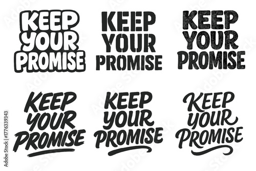 © Coosh448, Fototapeta premium Harmonious Lettering Styles. Keep your promise. Set lettering. harmonious lettering variations of the same emblematic concept, each with different artistic