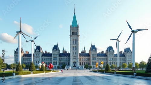 © Black, Obraz premium Harmony between wind power generation and ancient buildings