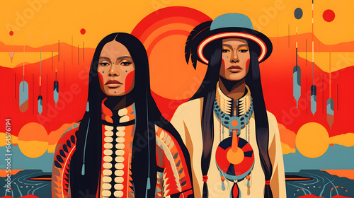 © Augusto, Fototapeta premium Harmony in Diversity: Fostering Native American Social Inclusion, AI Generative