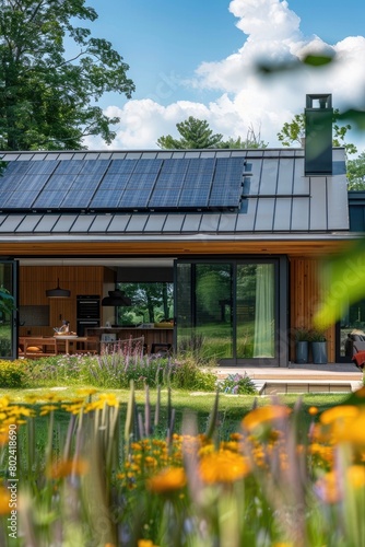 Obraz premium Harnessing the Suns Power: A Modern House With Solar Panels