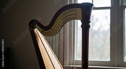 Obraz premium Harp near window, warm tones