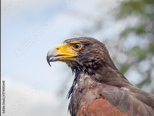 © Mushy, Obraz premium Harris hawk, Parabuteo unicinctus. Headshot.