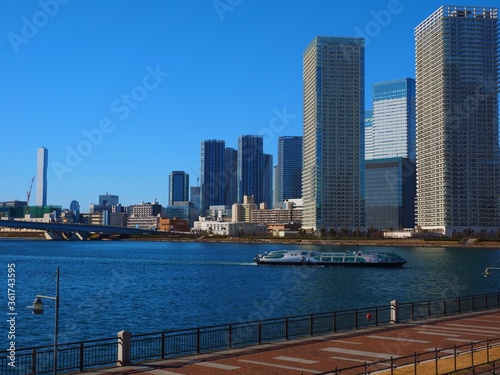 © oasisoasis, Fototapeta premium Harumioohashi bridge with cruise ship distant view
