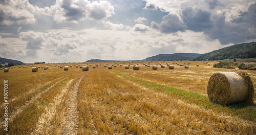 Fototapeta premium harvest time - straw bales in a field