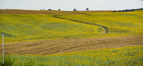 Fototapeta premium Harvested crops between sunflowers