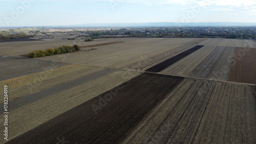 © Jana, Fototapeta premium harvested fields in Vojvodina province in autumn seen from above
