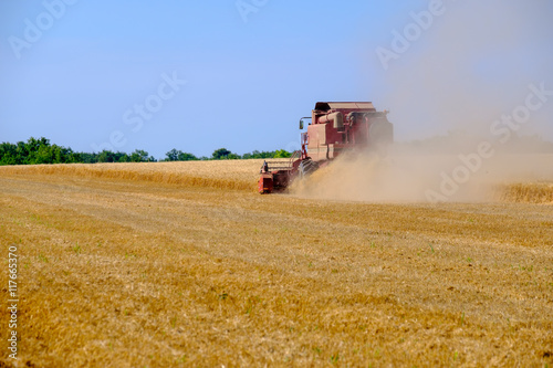Fototapeta premium Harvester gathers the wheat crop in a field