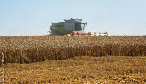 Fototapeta premium Harvester machine to harvest wheat field working.