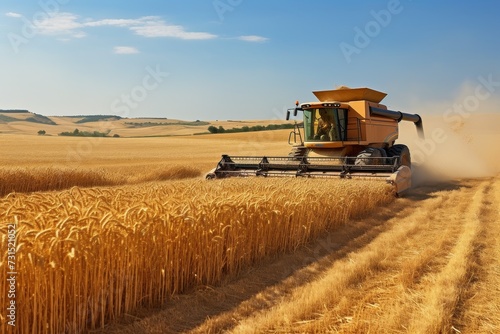 © Media Srock, Obraz premium Harvesting a wheat field,, Harvesting wheat in rural landscape
