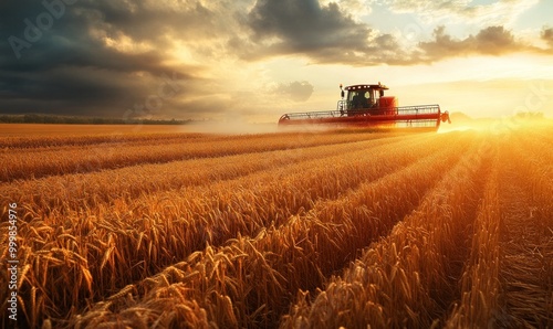 © Аrtranq, Fototapeta premium Harvesting at Sunset in a Golden Wheat Field