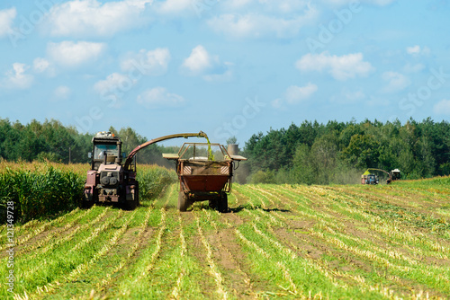 Naklejka premium harvesting corn crop with tractor