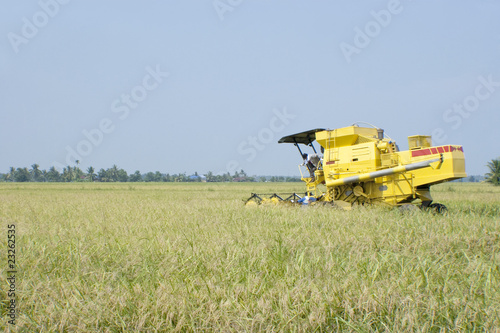 Naklejka premium Harvesting machine is used to harvest Malaysia paddy