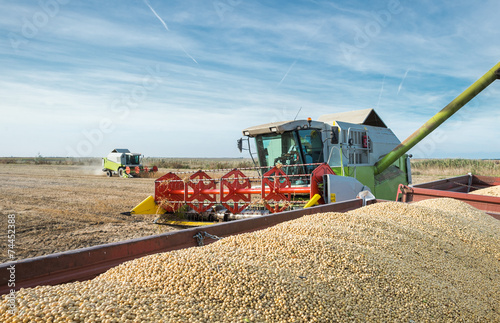 © Dusan Kostic, Fototapeta premium Harvesting of soy bean