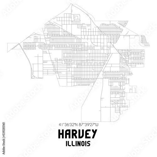 Fototapeta premium Harvey Illinois. US street map with black and white lines.