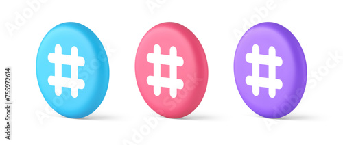 Obraz premium Hashtag button social network media communication symbol internet message key 3d circle icon