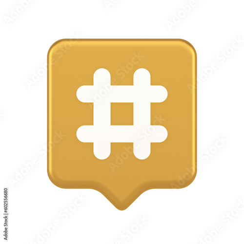 Obraz premium Hashtag button social network media communication symbol internet message key 3d speech bubble icon