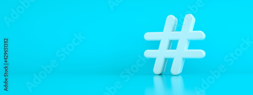 © alesmunt, Obraz premium hashtag 3d rendering over blue background, panoramic mock-up