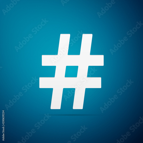 © mingirov, Obraz premium Hashtag icon isolated on blue background. Social media symbol. Modern UI website navigation. Flat design. Vector Illustration