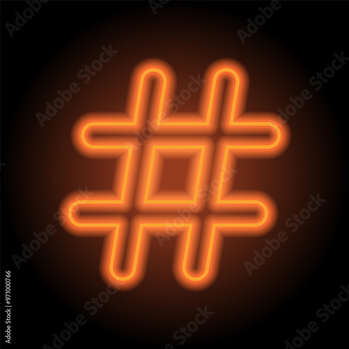 Obraz premium Hashtag simple icon vector. Flat design. Orange neon on black background