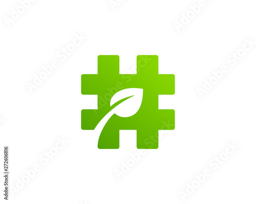 Fototapeta premium Hashtag symbol eco leaves logo icon design template elements