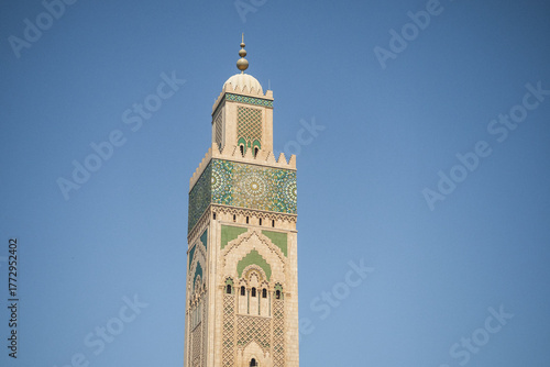 © Elodie, Fototapeta premium Hassan II mosque and its minaret, in the city of Casablanca, Morocco