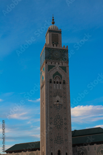 Fototapeta premium Hassan II mosque - the largest mosque of Morocco on the background of bright...