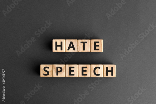 Obraz premium Hate speech - words from wooden blocks with letters, speech that attacks a...