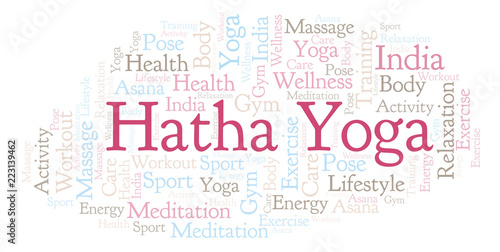 © sharafmaksumov, Obraz premium Hatha Yoga word cloud.