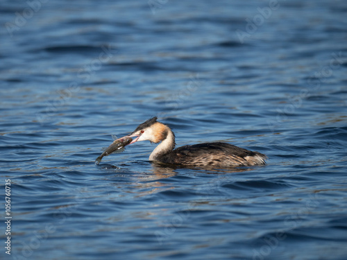 Fototapeta premium Haubentaucher mit Kaulbarsch
