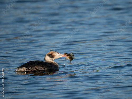 Fototapeta premium Haubentaucher mit Kaulbarsch