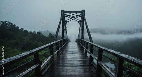 © sevenSkies, Fototapeta premium Haunted bridge with fog rising background