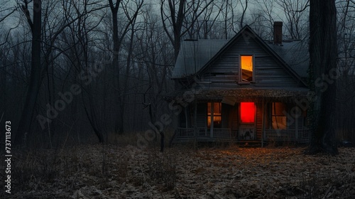 Obraz premium Haunted House in Autumn A Scary Night in the Woods Generative AI