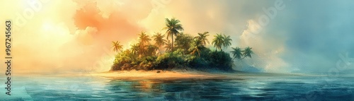 Fototapeta premium Haunted island, pirate treasure buried under ancient curse, eerie atmosphere, Watercolor style