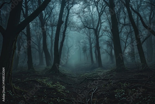 Obraz premium Haunted Shadowy Thicket Panorama with Unoccupied Space