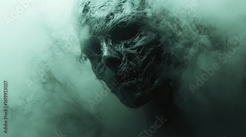 © Jeloart, Fototapeta premium Haunting Visage Spectral Figure Emerging from the Mist