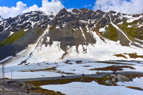 © Ilhan Balta, Fototapeta premium Hauptstrasse 28 am Flüelapass, Graubünden, Schweiz