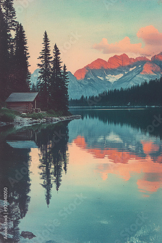 © Christopher, Fototapeta premium Haus am See mit Bergen