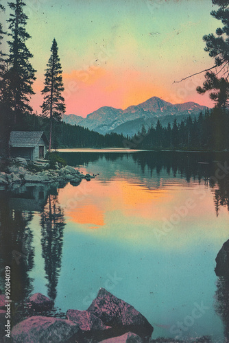© Christopher, Fototapeta premium Haus am See mit Bergen