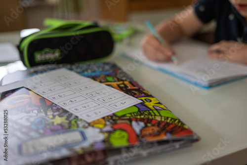 © René Bittner, Fototapeta premium Hausaufgaben werden von einem Kind geschrieben