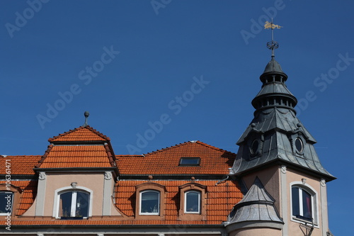 © gameboyfoto, Obraz premium Hausdach mit Wetterfahne