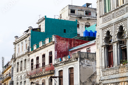 Fototapeta premium HAVANA - APRIL 27: People, cars and buildings in Old Havana (Havana Vieja),...