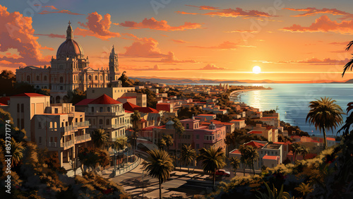 Naklejka premium Havana - Cuba, Caribbean, City, Cartoon, Poster Style