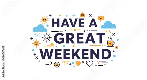 Obraz premium Have a Great Weekend Design with Sun and Cloud Graphic Elements