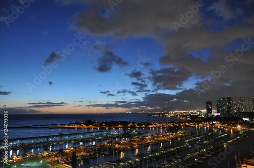 © Michael, Fototapeta premium Hawaiin City Scape at Dusk