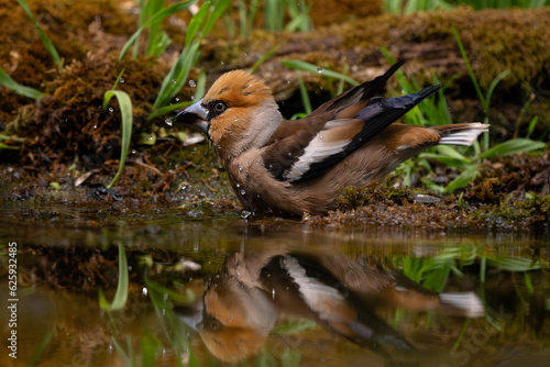© David, Obraz premium Hawfinch - Coccothraustes coccothraustes, beautiful colored perching bird from Old World forests, Slovenia.