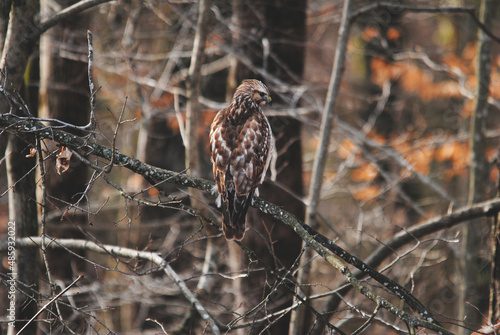 © Bill, Fototapeta premium Hawk Bird Perched in a Tree Looking for Food