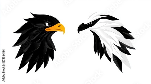 © Oleksandr, Obraz premium Hawk head silhouette, black and white tribal style animal illustration, vector graphic hawk.