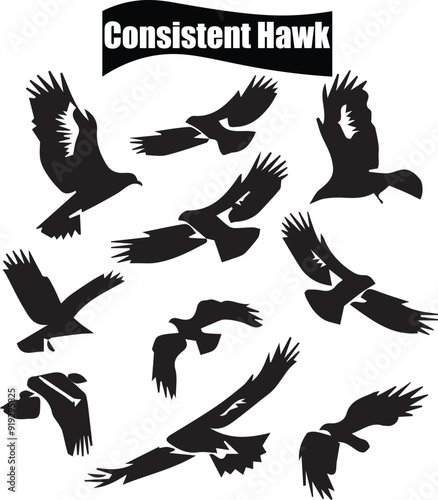 © Nahid, Obraz premium Hawk Minimalist Black Silhouette Vector Collection