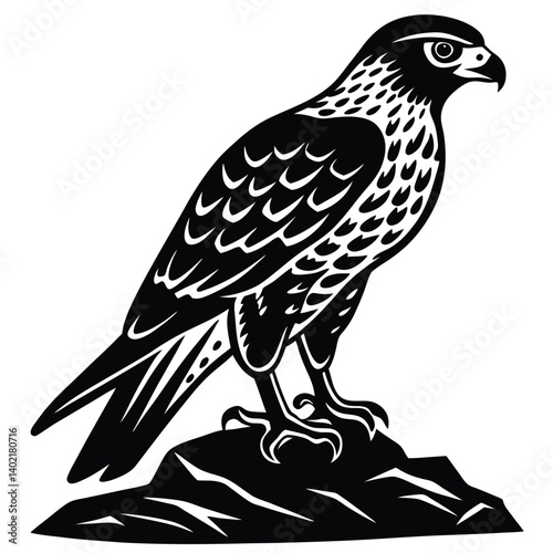 © graphicspro, Fototapeta premium hawk perched on a rock silhouette